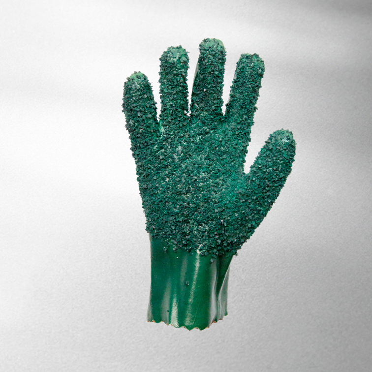 手套采用棉质内衬,表面完全涂覆聚氯乙烯(PVC),掌心采用颗粒涂层,以增强抓握力。